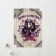 Renda vitoriana preta, papel de parede listrado antigo, uma coroa de Natal com ornamentos de caveira ao redor da sua foto favorita. A saudação perfeita para um Natal Gótico. Parte da nossa Coleção de Natal Gótico Muito Alegre.