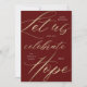 Elegante escrita com folha dourada falsa "vamos celebrar a esperança" para dar um pequeno impulso neste ano desafiador e celebrar as coisas que estão por vir. Escolha entre dois fundos, branco e burgundy, que complementam bem a escrita dourada e entre muitos itens desta coleção. Verifique nossa loja para mais itens compatíveis.