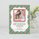 Festividades Cartão de Foto de Férias com Listras Verdes e Verm