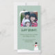 Um boneco de neve fofo e alegre saúda você entre os flocos de neve neste cartão de foto de férias. Dois passarinhos empoleirados no topo de alguma neve acima da sua foto personalizada vigiam a cena. Use para qualquer feriado que você celebre em dezembro: Natal, Hanukkah, Kwanzaa ou apenas como um cartão de Ano Novo. Todo o texto é personalizável. Disponível em cores de fundo alternativas com produtos correspondentes.