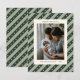 Celebre a temporada com estilo com este cartão de foto de férias elegante com listras verdes. Com um padrão de listras diagonais atemporais e acentos de estrelas douradas, este design emoldura lindamente sua foto de família e mensagem de Natal sincera. Perfeito para novos pais, famílias em crescimento ou casais, é uma maneira sofisticada de compartilhar alegria e votos calorosos com amigos e entes queridos.