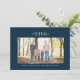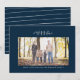 Este cartão de Natal horizontal com uma foto apresenta um monograma proeminente cercado por galhos rústicos festivos e o ano e um espaço para um cumprimento personalizável. O verso apresenta um fundo listrado navy. A cor azul navy pode ser alterada clicando em "personalizar". Adesivos de endereço coordenados estão disponíveis na coleção Rustic Monogram por Lea Delaveris Design. Este design é uma maneira perfeita de enviar votos de Natal junto com a melhor foto da sua família!