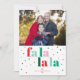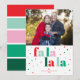 Espalhe alegria natalina com o nosso cartão de foto de Natal Fa La La La Vermelho Verde Rosa Plano. O cartão alegre tem tipografia moderna e cores festivas de vermelho, verde e rosa. A frente do cartão inclui um local para foto para sua família favorita e uma saudação alegre de 'fa la la la'. A parte de trás do cartão combina com listras ousadas para um acabamento extra alegre. Personalize-o perfeitamente com sua foto e mensagem de Natal para seus entes queridos.