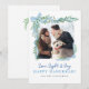 Personalize este cartão de foto de Hanukkah com arco azul e folhagens em aquarela caprichoso com sua própria foto e mensagem de Natal. Escolha tê-los impressos, receba como download digital ou ambos!