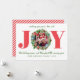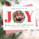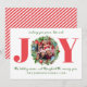 Envie paz, amor e alegria com este cartão de Natal moderno com um design festivo "ALEGRIA", onde sua foto é enquadrada dentro de uma grinalda de Natal em aquarela. Listras de caneta de açúcar vermelhas no verso adicionam um toque lúdico e coordenado. A elegante escrita verde e os elementos de pinheiro unem tudo para uma saudação de Natal alegre e moderna.