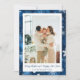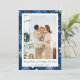 Envie votos calorosos em estilo invernal com este elegante cartão de Natal com foto de flocos de neve azuis. Com um fundo gradiente azul-marinho rico salpicado com delicados flocos de neve brancos e sutil efeito bokeh, este cartão emoldura lindamente sua foto de família favorita em um layout moderno e festivo. A frente inclui texto editável para personalizar sua saudação de Natal e assinatura - seja você celebrando como casal, família ou lar.