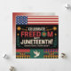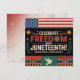 Celebrar a 12 de junho com este elegante cartão de saudação de temas livres. Apresentando elementos simbólicos como cadeias quebradas, pombas, e sotaques vibrantes de vermelho, azul e ouro, esta carta honra a jornada da luta à liberação. Perfeito por compartilhar esperança, unidade e orgulho com os entes queridos neste dia histórico.