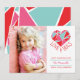 Um coração formado por vários triângulos em aqua rosa, vermelho e claro, com as palavras "Amor e Abraços" embaixo. A parte traseira da placa apresenta o mesmo design de triângulo geométrico. Fácil de personalizar! Substitua a imagem de modelo antes de comprar.