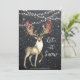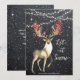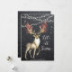 Um belo cartão de natal com efeito aquoso com fundo de efeito de quadro negro de neve e veado decorado com bagas e aves. Fácil de editar ou excluir as mensagens na frente e na parte traseira para atender às suas necessidades pessoais. Outros itens também à venda com este design, por favor visite o meu compro.