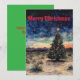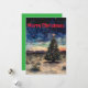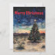 Um cartão de Natal de dois lados, com uma bela árvore de Natal no deserto. A frente diz: Feliz Natal. O verso diz: Do Sudoeste Americano!