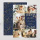 Festividades Cartão de Natal Azul de Colagem de Fotos Dourado
