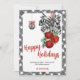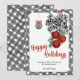Envie votos calorosos com estilo com este cartão de férias Black and White Noël. Com uma borda xadrez preta e branca elegante, sinos de Natal vermelhos festivos, fita listrada e enfeites pendurados elegantes, este design combina charme clássico de Natal com charme moderno de casa de fazenda. Personalize com o nome da sua família e saudação para criar um presente caloroso que espalha paz, amor e alegria por toda a temporada.