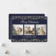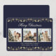 Elegante foto azul e dourada Cartão de Natal Merry com colagem fotográfica e holly sobre fundo azul escuro. Personalize facilmente este cartão de feriado com as suas fotografias e texto. O plano de fundo pode ser alterado para qualquer cor.
