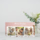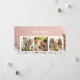 Este design de cartão de Natal apresenta uma cena invernal caprichosa com três casas cor-de-rosa cobertas de neve. As casas, com portas e janelas douradas, são rodeadas por árvores carregadas de neve e pinhas, criando uma atmosfera festiva e aconchegante. O fundo rosa suave com flocos de neve brancos caindo adiciona um toque de charme e calor ao cartão. A frente do cartão inclui três espaços reservados para upload de fotos pessoais da família, permitindo que você adicione um toque pessoal aos seus cumprimentos de Natal. A inscrição "Feliz Natal" é exibida de forma elegante, realçando o clima festivo do cartão.