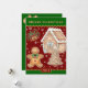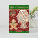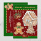 Cozinhar de Natal / Cartão de Baking com pão de gengibre vintage junto com casa e árvore de Natal feitos com pão de gengibre e flocos de neve caindo. Mude facilmente a mensagem de ano novo e feriado para o seu cartão familiar personalizado.