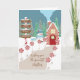 Um cartão de Natal caprichoso com uma pequena casa vermelha no Polo Norte , um boneco de neve com um cardeal no chapéu , uma placa de madeira (que diz onde ir) , e alguns pirulitos de peppermint para decorar o caminho para a casa . Personalize com sua própria mensagem de Natal .