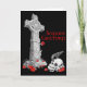 Cartão de Natal Celtic Cross e Raven, com um Raven no crânio, rosas à volta, Cruz Celta e saudação sazonal. Dentro com rosas coloridos e saudação de Natal mais pequenos. Este cartão está disponível sem palavras.