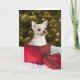 O pequeno Chihuahua branco mais bonito saindo de uma caixa de presentes traz sorrisos e "awh" galore. Seus amigos e parentes amantes dos animais vão adorar este cartão de Natal. A mensagem de Natal pode ser personalizada. Um original de foto SAP.