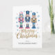 Celebre a magia do Natal com este elegante Cartão de Boas Festas do Quebra-Nozes, apresentando um charmoso trio de quebra-nozes vestidos com trajes festivos vibrantes. Perfeito para adicionar um toque de tradição e sofisticação aos seus votos de Natal, este cartão pode ser personalizado com o nome da sua família, tornando-se um item exclusivo para os entes queridos. Decorado com flocos de neve e "Feliz Natal" em uma escrita com efeito dourado, ele captura o espírito atemporal da época natalina e é uma escolha ideal para famílias que apreciam motivos clássicos de Natal.