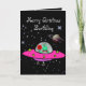 Cartão de Natal com Alienígena em nave espacial e Planetas