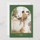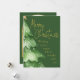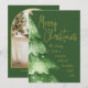 Envie votos calorosos de férias com este elegante cartão de Natal em aquarela, apresentando uma árvore pintada em verde suave acentuada com neve delicada e letras em grafia dourada que diz “Feliz Natal – Desejando uma temporada cheia de magia e alegria.” O design da parte de trás correspondente inclui uma moldura de foto clássica arqueada, perfeita para exibir a foto da sua família, cercada por um fundo verde rico com sotaques dourados sutis.