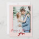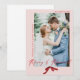 Este cartão de Natal para recém-casados é clássico e simples, mas ainda assim caprichoso. Compartilhe sua foto de casamento da noiva e do noivo com amigos e familiares neste design que apresenta as palavras "Alegre e Casado" em caligrafia cursiva acentuada por uma fonte serifada. Sua foto de casamento é acentuada por um arco vermelho pintado à mão em aquarela para adicionar um toque feminino de Natal!