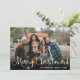 Envie saudações de Natal para amigos e familiares com amor e alegria. Este cartão diz "Feliz Natal" na frente e tem um sentimento personalizável no verso. O design é simples e moderno. As fontes são elegantes em dourado e branco com brilhos.