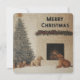 Festividades Cartão de Natal com Cães e Lareira em Cores Neutra
