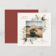 Moldura de Folhagem Botânica de Natal Festivo, cartão de foto plano. Características, tipografia em cor vermelha rústica e fundo de cor sólida combinando.
