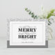 O design do cartão de Natal preto, cinza e branco da TeeLofts apresenta uma tipografia moderna e ousada 'Merry & Bright' sobreposta a um 'e comercial' cinza claro como elementos principais do design. A borda externa é uma arte linear de folhagens natalinas em cinza e branco. É fácil adicionar os nomes da sua família na frente e uma foto no verso datado. #Natal #Férias #CartõesDeNatal