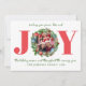 Envie paz, amor e alegria com este cartão de Natal moderno com um design festivo de “ALEGRIA”, onde sua foto é enquadrada dentro de uma guirlanda de Natal em aquarela. Listras vermelhas de bastão de doce no verso adicionam um toque lúdico e coordenado. A elegante escrita verde e os elementos de pinheiro unem tudo para uma saudação de Natal alegre e moderna.