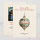 Envie votos de Natal atemporais com este cartão de Natal personalizado elegante, apresentando um enfeite vintage lindamente detalhado na frente e espaço para a foto e mensagem personalizada da sua família no verso. A saudação da frente é totalmente personalizável, em letra festiva, com o nome da sua família e ano abaixo.