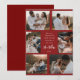 Este cartão de Natal, com um design lindo, apresenta um fundo vermelho rico e exibe seis fotos de família preciosas, permitindo que você compartilhe suas memórias favoritas do ano. O centro do cartão destaca uma mensagem sincera que você pode personalizar, seguida pelo nome da sua família e o ano. O design minimalista, porém festivo, combina calor pessoal com alegria natalina, tornando este cartão perfeito para enviar votos de boas festas aos entes queridos. Seu layout elegante e mensagem atenciosa capturam a alegria e as bênçãos da época natalina.