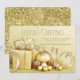 Ouro elegante Cartão de Natal corporativo com guião Gold Season's Saudações num fundo de ouro festivo. Este belo cartão de Natal corporativo de presente e ouro para ornamento é facilmente personalizado simplesmente adicionando sua mensagem e logotipo no estilo de fonte e na cor de sua escolha.