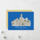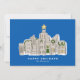Este cartão de feriado corporativo, de formato branco, apresenta uma linha do horizonte de cidade desenhada à mão, decorada para a época de Natal. Personalize a cor de fundo na frente e na parte traseira para qualquer coisa que você quiser!