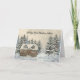 Este cartão de boas-vindas de Natal apresenta uma bela pintura digital de uma casa confortável aninhada entre pinheiros na neve em queda. Tanto o texto na frente como o dentro são completamente personalizáveis ou podem ser deixados como estão.