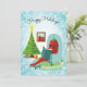 Pimenta chile divertida ou pimenta-do-pimenta lendo um livro em sua cadeira confortável, com retrato de árvore de Natal e família, cartão de Natal legal para um chef comida do sudoeste ou mexicano, empresa de restauração ou restaurante.
