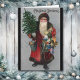 Uma imagem clássica e sofisticada da era vitoriana do Papai Noel carregando uma árvore e brinquedos está na frente deste cartão de saudação de Natal. Celebre o Natal à moda antiga! A mensagem dentro é facilmente personalizada, se você quiser alterá-la.
