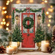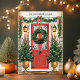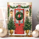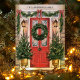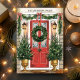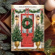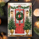 Bem-vindos ao feriado com este elegante cartão de Natal da família, com uma porta vermelha festiva adornada com uma bela coroa, flanqueada por árvores de Natal decoradas. Perfeito por enviar desejos de férias calorosos de sua família para os entes queridos. Personalize o nome da família no topo para um toque pessoal que torne esta placa verdadeiramente especial.