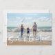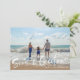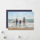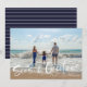 Cartão de saudação de Natal em um design de fotos "Seas & Saudações" inspirado na praia. Personalizado com a sua fotografia e o nome da sua família. Este cartão de Natal de praia inverte-se para um design de stripe náutica azul e branco no verso.