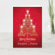 Um belo cartão de Natal não-religioso que você terá orgulho de enviar. Uma representação de uma árvore de Natal ouro iluminada com velas brilhantes. Um cartão de Natal para enviar à sua filha e à sua parceira.