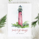 Festividades Cartão de Natal de Aquarela com Farol na Praia
