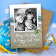 Cartões de Natal para fotos da praia do Oceano. Personalizar com uma saudação e assinatura. Adicione uma foto de família ao modelo quadrado, com um pouco de estrelas-do-mar e um pedaço de santo no canto. O reverso é uma imagem de areia marrom.
