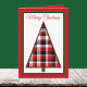 Lembrete do Natal passado, este cartão de Natal xadrez apresenta uma árvore de Natal no centro em uma xadrez preta, branca e vermelha. As palavras "Feliz Natal" aparecem em vermelho ao longo do topo e o cartão é bordado numa pequena fronteira verde e vermelha maior. Ao abrir o cartão, você vê a mesma borda vermelha e verde junto com uma mensagem de feriado e um local para adicionar seu nome. Copyright Kathy Henis