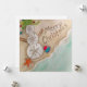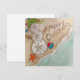 Dólares de areia formam um Sandyman na praia com "Feliz Natal", escrito na areia. Adicione a sua própria mensagem à frente na área da água.