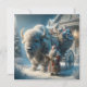 Bisonte Puxando um Carrinho de Brinquedo de Presente de Natal e cartão de Natal do Papai Noel. Personalize com sua própria mensagem e faça-o seu.