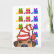 Cartão de Natal de cachorro fofo com chapéu de Papai Noel e presentes ao fundo. Feliz Natal no interior. Vem em tamanho pequeno e padrão com opção de acabamento fosco ou semibrilhante. O texto pode ser alterado e imagens podem ser adicionadas.