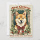 Um cartão de Natal estilo vintage com um cão shiba inu. Adorado por todos os shibas que têm pelo menos um humano na família. O texto 'de' frontal, o texto traseiro e a imagem traseira podem ser personalizados ou deixados como estão.