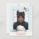 Uma ilustração em estilo de desenho animado coloca sua foto de férias em uma divertida cena de neve. Sua foto perfeita de Natal, carregada de neve, é visitada por um pássaro Cardinal vermelho e os restos de uma batalha de bolas de neve estão na base. Personalize a saudação e o nome da família (ou altere para se adequar ao seu humor!) e este é o cartão personalizável perfeito para uma família com senso de humor... Este quadro festivo é realmente adequado para uma foto engraçada para um cartão de foto de Natal divertido - foto e texto, incluindo a saudação, podem ser personalizados. O verso foi deixado em branco para sua própria mensagem manuscrita. A partir de um desenho original vivo e expressivo a tinta com marcas, respingos e salpicos de aquarela do meu estilo característico, isso dá à obra de arte um sentimento fresco e imediato.