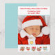 Cartão de Natal adorável, com uma fronteira de corujas festivas. Adicione sua própria foto e texto.
